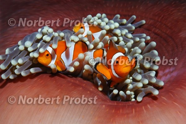 Drei, Westlicher Clownfisch, (Amphiprion ocellaris) Anemonenfisch, Fische, Nemo, Anemone, (Heteractis magnifica) Bali, Insel, Kleine Sundainseln, Bali See, Indonesien, Indischer Ozean, Asien | Three, Western clown-anemonefish, (Amphiprion ocellaris) anemonefish, nemo, fishes, anemone, (Heteractis mafnifica, Bali, island, Lesser Sunda Islands, Bali Sea, Indonesia, Indian Ocean, Asia