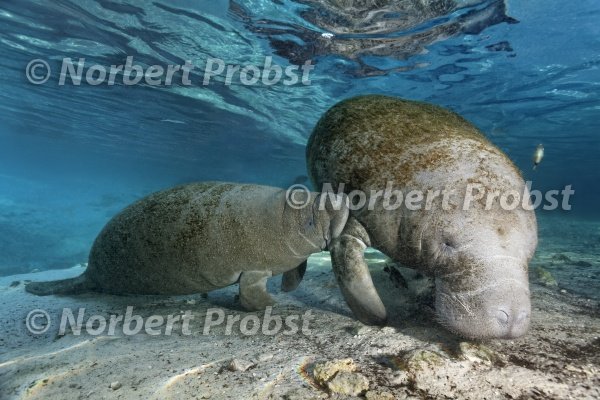 Karibik-Manati oder Nagel-Manati (Trichechus manatus), Muttertier, Kuh stillt junges Kalb, Three Sisters Springs, Manati Schutzgebiet Crystal River, Florida, USA | West Indian manatee or Sea Cow (Trichechus manatus) mother cow nurses juvenile calf, Three Sisters Springs, Manatee Sanctuaries Crystal River, Florida, USA