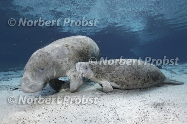 Karibik-Manati oder Nagel-Manati (Trichechus manatus), Muttertier, Kuh stillt Kalb, Three Sisters Springs, Manati Schutzgebiet, Crystal River, Florida, USA | West Indian manatee or Sea Cow (Trichechus manatus), cow satisfies calf, Three Sisters Springs, Manatee Sanctuaries, Crystal River, Florida, USA
