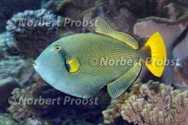 Witwen Drückerfisch, Rotschwanz Drückerfisch, (Melichthys vidua) schwimmt im Korallenriff, Farbvariante, Saparua, Insel, Molukken, Banda See, Pazifik, Indonesien | Pinktail Triggerfish, Whitetail Triggerfish, (Melichthys vidua), color variety, swims above coral reef, Saparua, island, Maluku, islands, Banda Sea, Pacific, Indonesia
