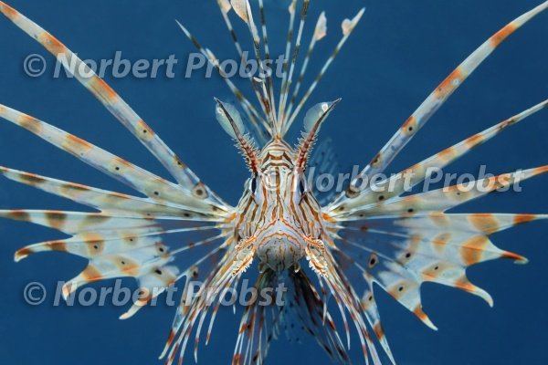 | African Lionfish | am Tag | animal | animal kingdom | animal world | animals | Araber | Arabien | arabisch | arabische | arabischer | arabisches | Asia | at the blue | außen | Außenaufnahme | Aussenaufnahme | Blau | Blauwasser | blue | Brustflosse | Brustflossen | by day | creature | daytime | draußen | draussen | Echte Knochenfische (Teleostei) | exterior | fin | fins | Flosse | Flossen | Foto | fotos | Freiwasser | frontal | gefaehrlich | gefährlich | Geschoepf | Geschöpf | giftig | Haschemitisches Königreich Jordanien | Hashemite Kingdom of Jordan | head-on | image | images | Indic, | Indischer Rotfeuerfisch (Pterois volitans) | JK | jordanian | Jordanien | Jordanier | jordanisch | jordanische | jordanischer | jordanisches | Jordans | Lebewesen | Lionfishes | living being | location | location shot | Maul | Meer | Meere | Middle East | mouth | Neuflosser (Neopterygii) | ocean | offenes Meer | open | open sea | organism | outdoor shot | outer | outside | Ozean | Panzerwangen (Scorpaeniformes) | pectoral fin | pelagic | pelagisch | photo | photograph | photographs | photos | poisonous | Red Sea | Rotes Meer | Rotfeuerfische | Scopaenidae | Scorpaenidae | Scorpionfish | Scorpionfishes | Sea | seas | shot | Skorpion fishes | Skorpionfisch | Skorpionfischartige (Scorpaenidae) | Skorpionfische | species | Stachelflosser (Acanthopterygii) | Strahlenflosser (Actinopterygii) | tagsüber | tagsueber | Tiere | Tierreich | Tierwelt | toxic | toxisch | underwater | unterwasser | Unterwasserfoto | Unterwasserfotos | unterwasserwelt | venomous | von vorne | Vorderasien | vorsicht | water | world |