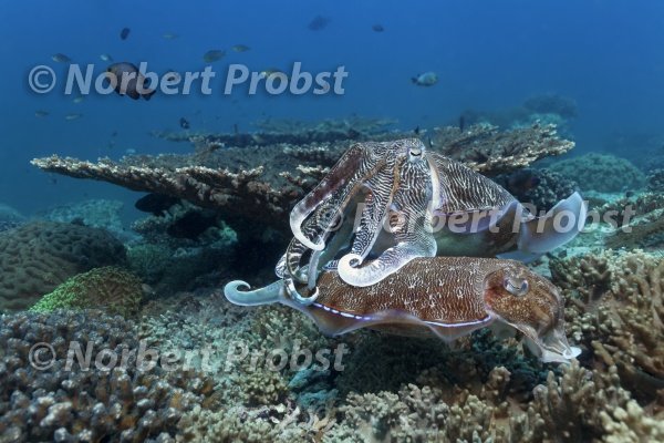 | Paar Breitkeulen-Sepia oder Breitarm-Sepia, (Sepia latimanus) bei Eiablage, Daymaniyat Inseln Natur Reservat, Khawr Suwasi, Al-Batina Provinz, Sultanat von Oman, Arabische Halbinsel Asien, Golf von Oman, Indischer Ozean | Broadclub cuttlefish, (Sepia latimanus), couple, laying eggs, Daymaniyat islands natur preserve, Khawr Suwasi, Al-Batina province, Sultanate of Oman, arabic peninsula, Asia, Gulf of Oman, Indian Ocean |