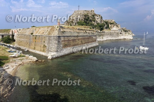 Alte Festung (Palaió Froúrio), im 16. Jahrhundert von Venezianern erbaut, Altstadt, Korfu Stadt, Kerkyra, Unesco Weltkulturerbe, Insel Korfu, Ionische Inseln, Griechenland | Old fortress (Palaió Froúrio), built from Venetians at 16. century, historic district, Corfu City, Kerkyra, Unesco World Heritage Site, Corfu island, Ionian Islands, Greece
