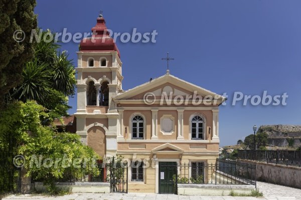 Griechisch orthodoxe Panagia Mandrakina Kirche oder Jungfrau Maria Kirche, Altstadt, Korfu Stadt, Kerkyra, Unesco Weltkulturerbe, Insel Korfu, Ionische Inseln, Griechenland | Greec orthodox Panagia Mandrakina church or Virgin Mary church, historic district, Corfu City, Kerkyra, Unesco World Heritage Site, Corfu island, Ionian Islands, Greece