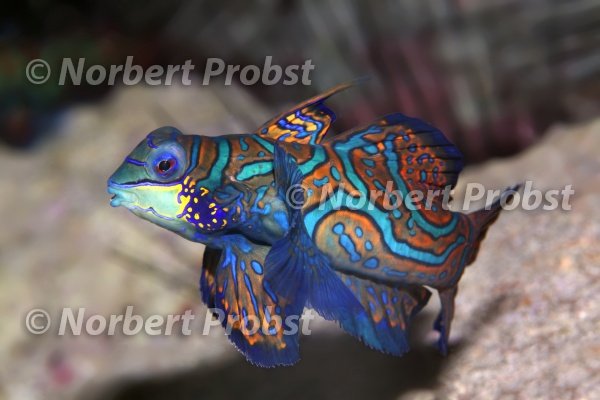 Mandarinfisch, Mandarin Leierfisch, (Synchiropus splenditus), Wakatobi Island, Tukangbesi Archipel, Wakatobi National Park, UNESCO Weltnaturerbe, Banda See, Südost-Sulawesi, Indonesien | Synchiropus splenditus), Mandarinfisch (Synchiropus splenditus), Wakatobi Marine Park, UNESCO, World Heritage Site, Banda Sea, Southeast-Sulawesi, Indonesia