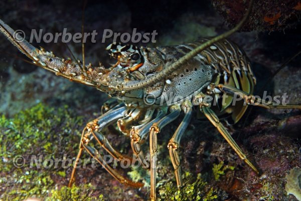Karibische-Stachellanguste (Panulirus argus) in ihrem Unterschlupf, Barriereriff, San Pedro, Insel, Ambergris Cay, Belize, Mittelamerika, Zentralamerika, Karibik