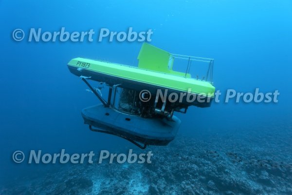 Unterseeboot, U-Boot mit Touristen taucht über Korallenriff, Insel, Bora Bora, Inseln unter dem Winde, Gesellschaftsinseln, Französisch Polynesien, Frankreich, Süd-Pazifik | Subarine Boat with tourists dives over coral reef, island, Bora Bora, Windward Islands, Society Islands, French Polynesia, France, South-Pacific