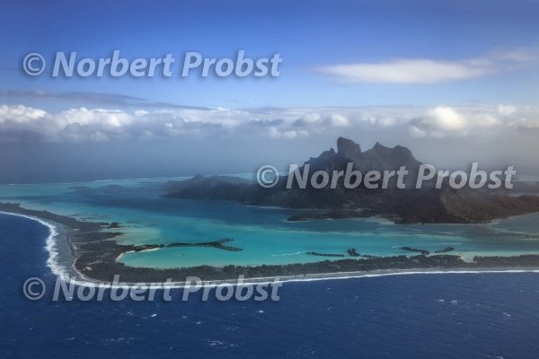 Luftaufnahme, Insel, Bora Bora, Inseln unter dem Winde, Gesellschaftsinseln, Französisch Polynesien, Frankreich, Ozeanien | Aerial view, island, Bora Bora, Windward Islands, Society Islands, French Polynesia, France, Oceania